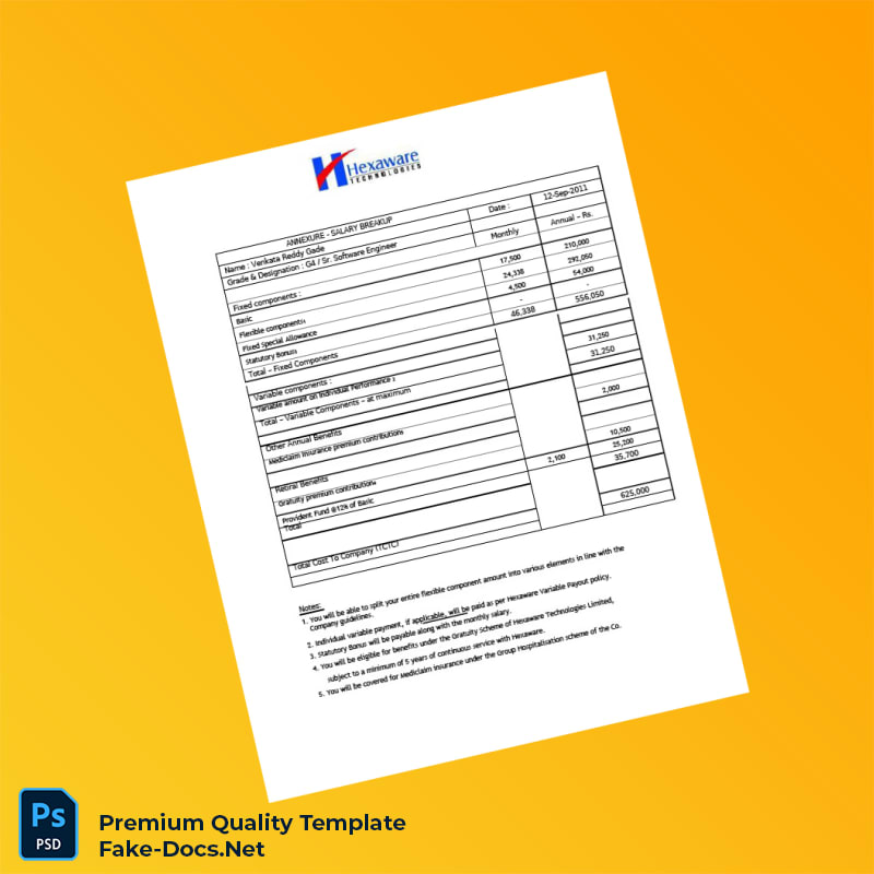India Hexaware Technologies Employment Verification Letter Template (Word & PDF) 2 page