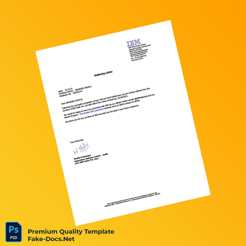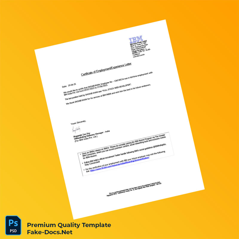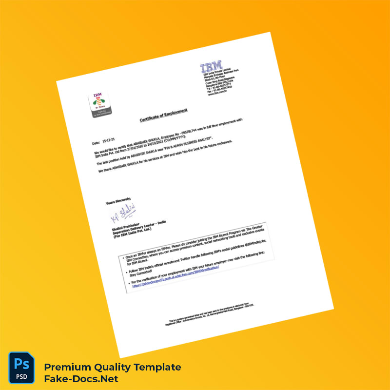 India IBM Employment Verification Letter Template (Word & PDF) 2 page