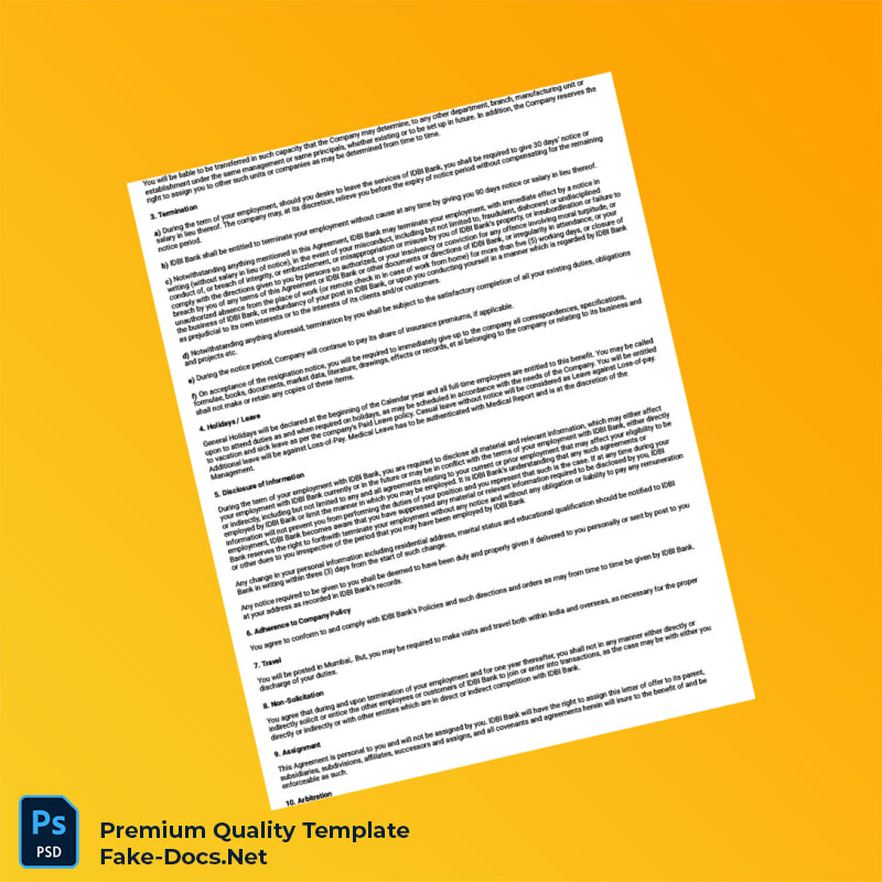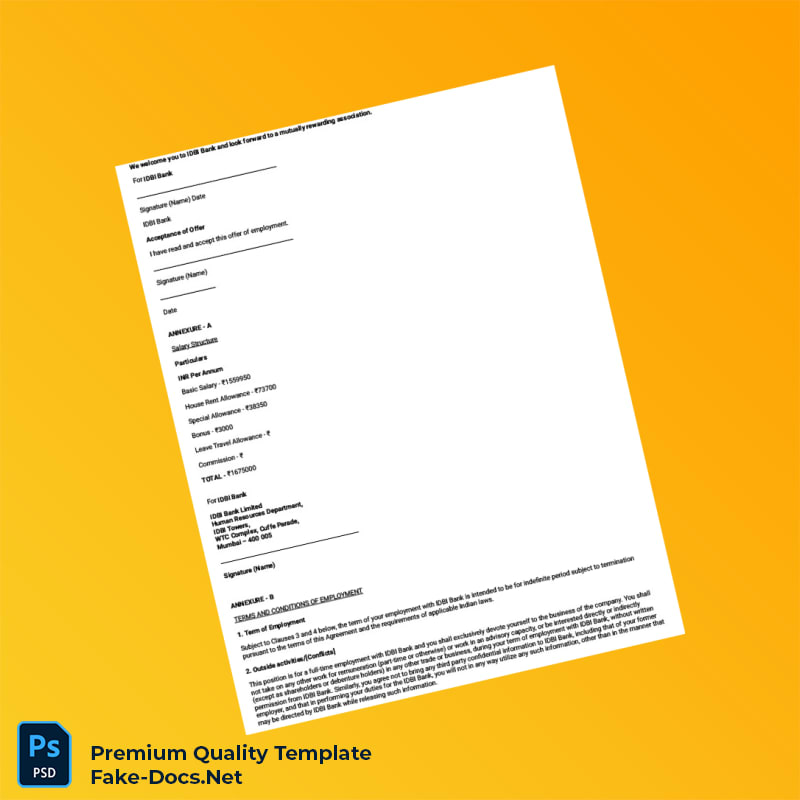 India IDBI Bank Employment Verification Letter Template (Word & PDF) 4 page