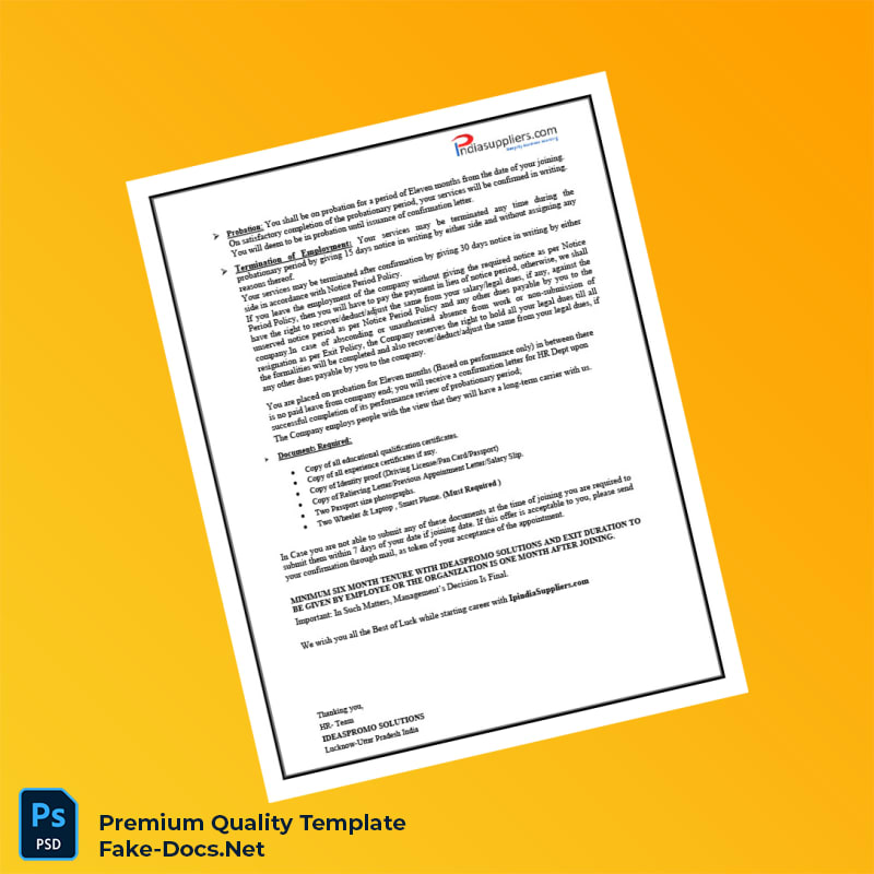 India IDEASPROMO SOLUTIONS Employment Verification Letter Template (Word & PDF) 2 page