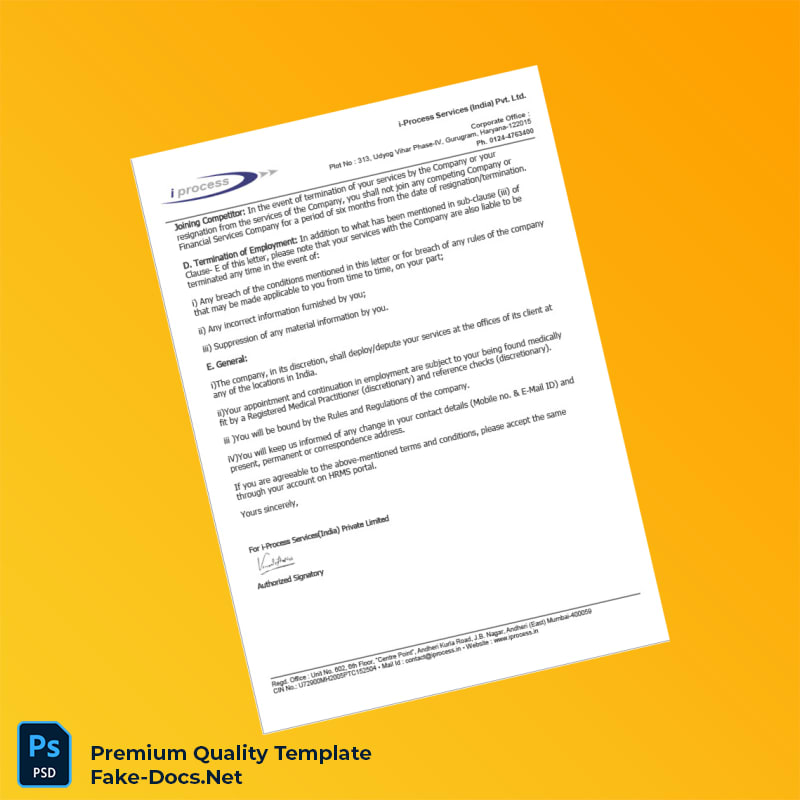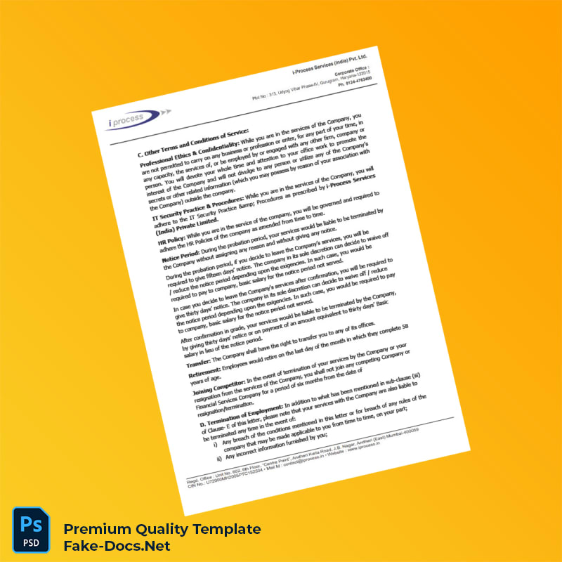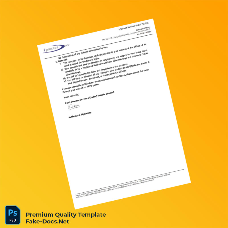 India i-Process Services Employment Verification Letter Template (Word & PDF) 6 page