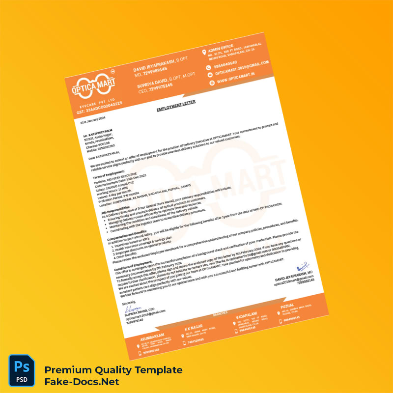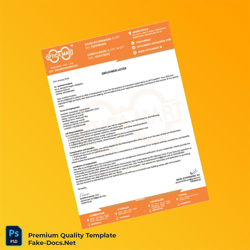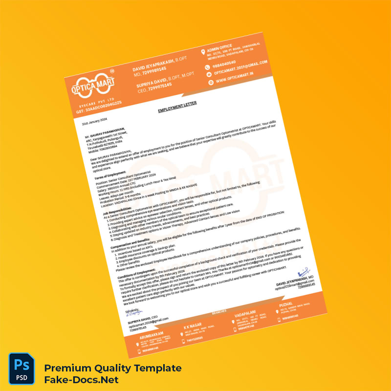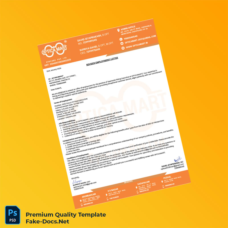 India OPTIC MART Employment Verification Letter Template (Word & PDF) 3 page