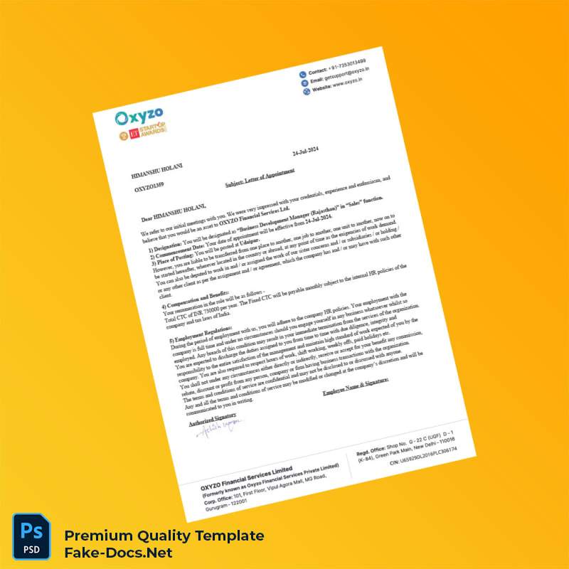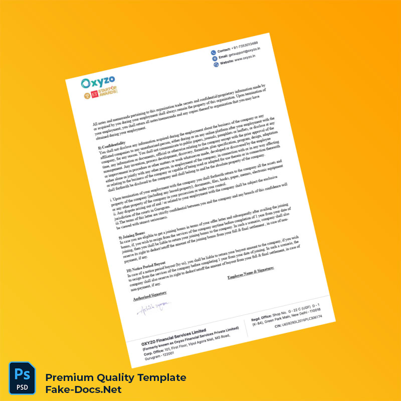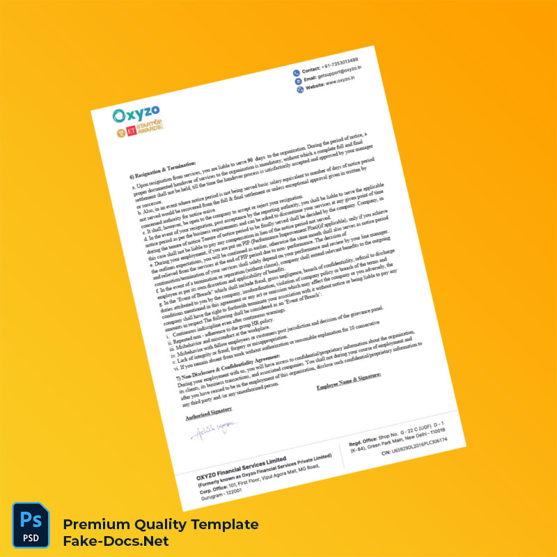 India OXYZO Employment Verification Letter Template (Word & PDF) 5 page