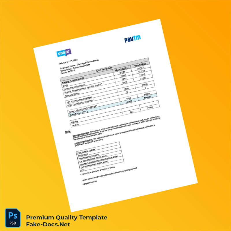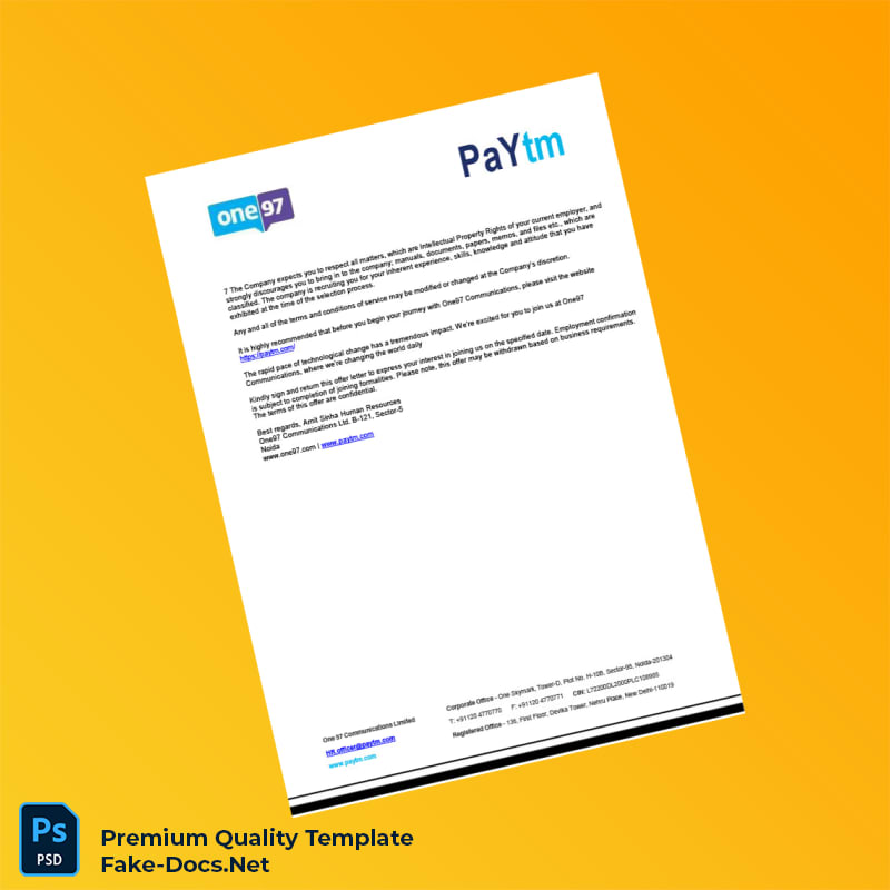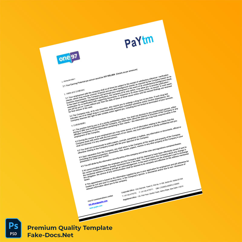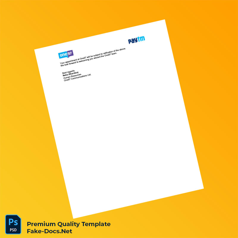 India One97 Communications Ltd Employment Verification Letter Template (Word & PDF) offers easy, professional proof of employment for quick, accurate verification.