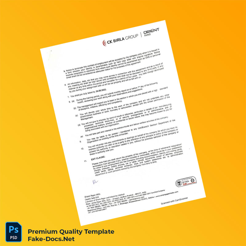India Orient Paper Mills Appointment Letter Template (Word & PDF) 3 page