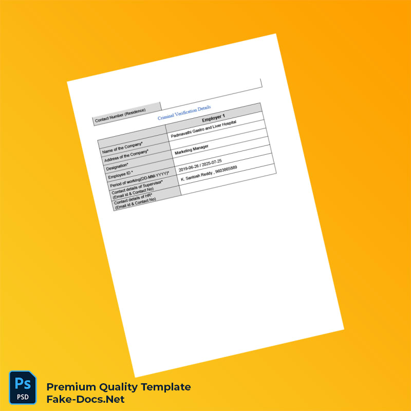 India Padmavathi Gastro and Liver Hospital Employment Verification Letter Template (Word & PDF) offers quick, editable verification for professional employment confirmation.