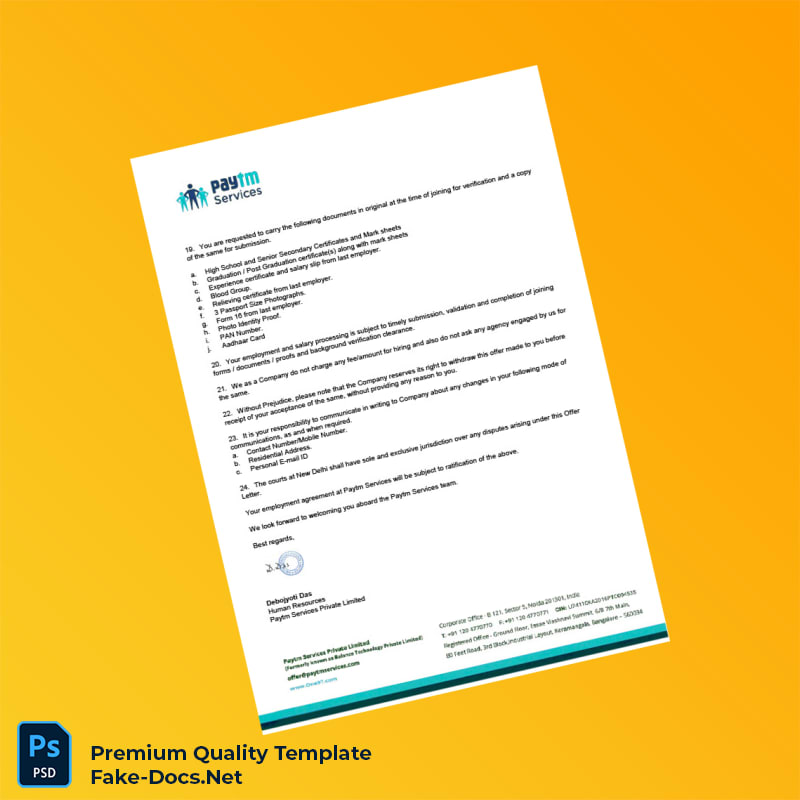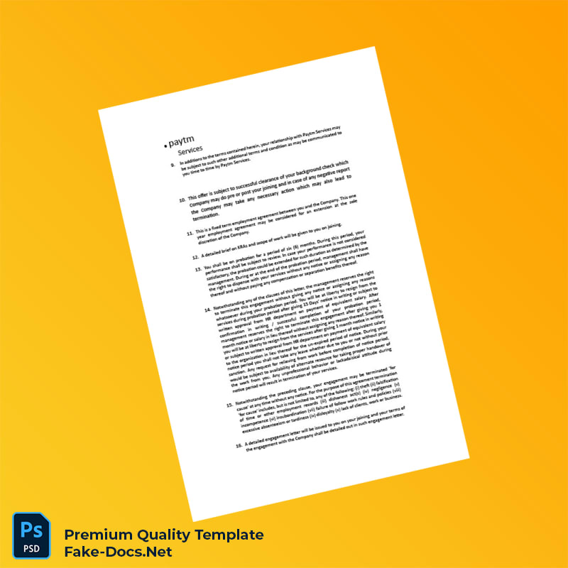 India Paytm Services Employment Verification Letter Template (Word & PDF) 4 page