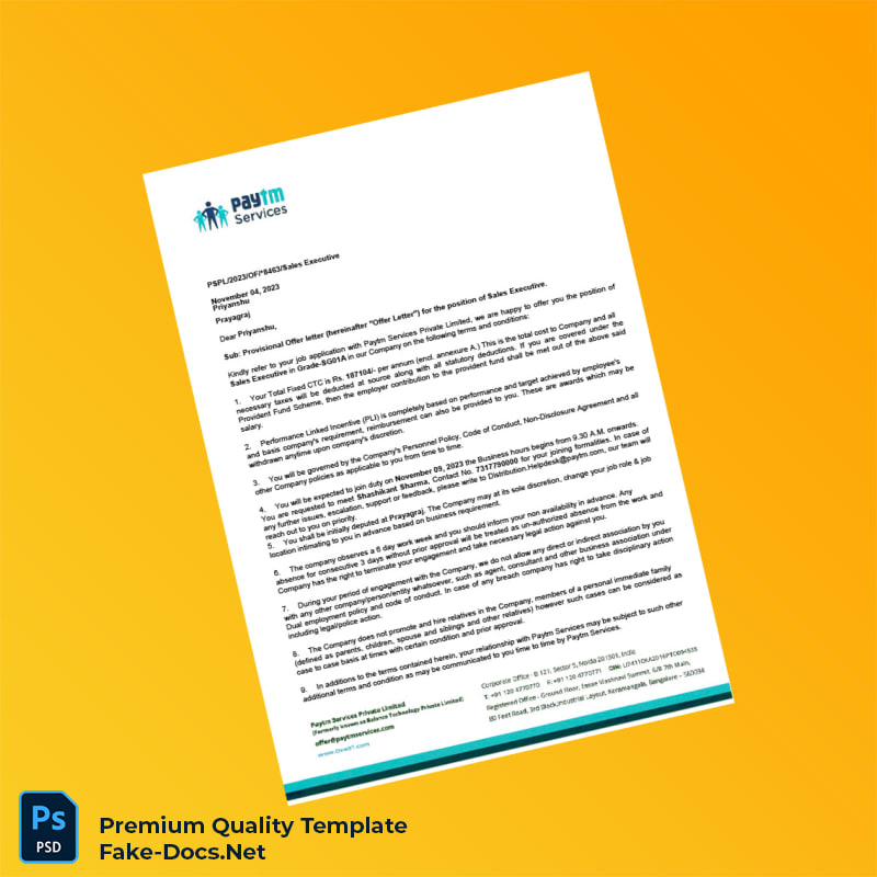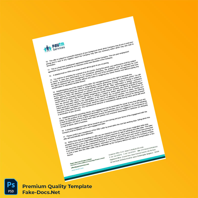 India Paytm Services Private Limited Employment Verification Letter Template (Word & PDF) 4 page