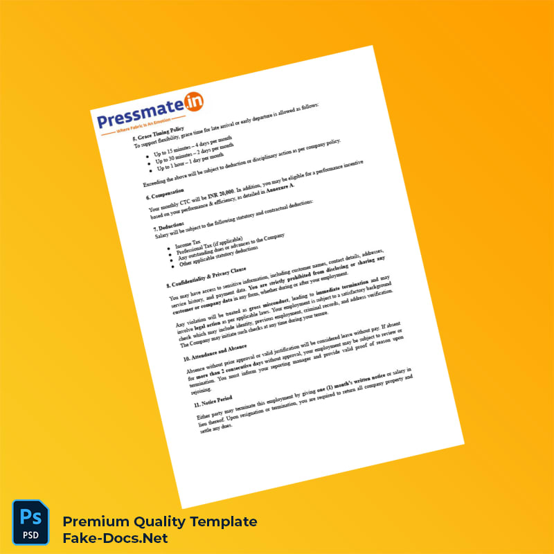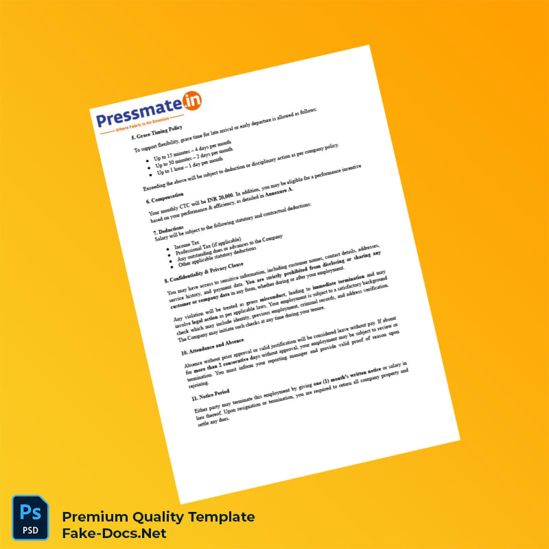 India Pressmate Employment Verification Letter Template (Word & PDF) 4 page