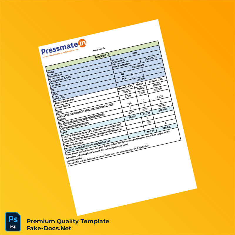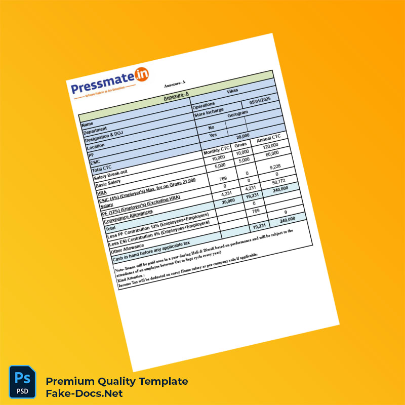 Get the India Pressmate Employment Verification Letter Template (Word & PDF) for fast, professional, and editable employment proof with instant download.