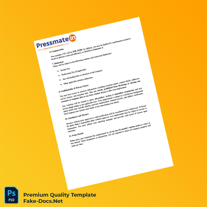 India Pressmate Dotin Care Pvt Ltd Joining Letter Template (Word & PDF) simplifies creating professional employment verification documents quickly and easily.
