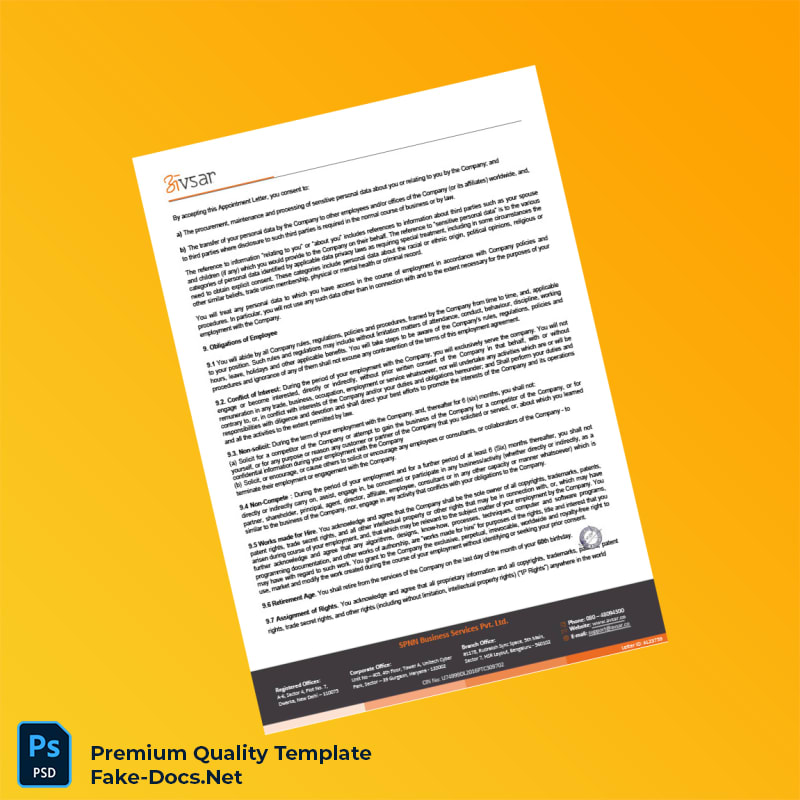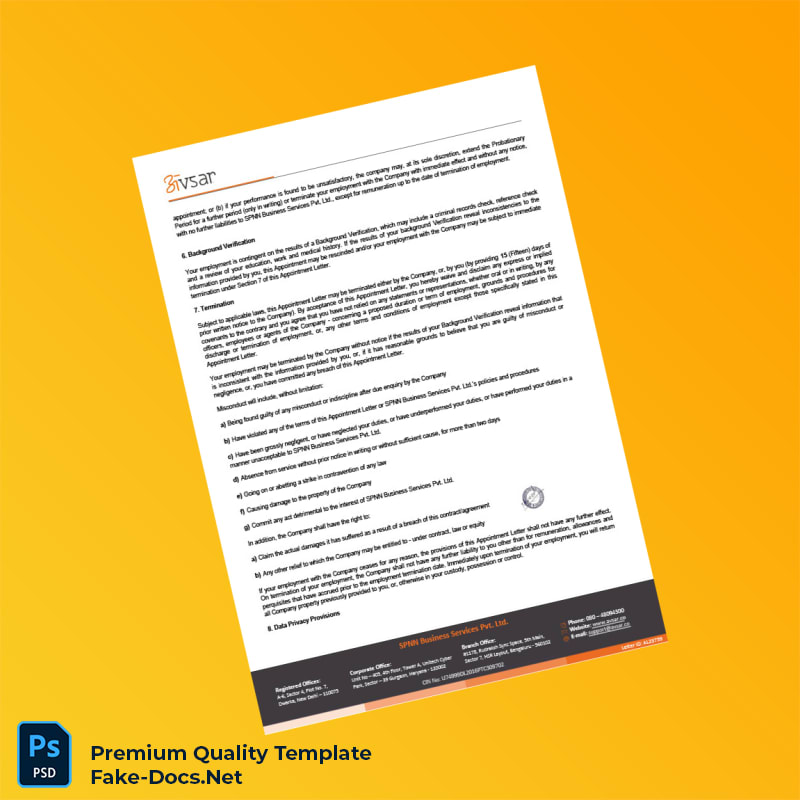 India SPNN Business Services Private Limited Employment Verification Letter Template (Word & PDF) 5 page