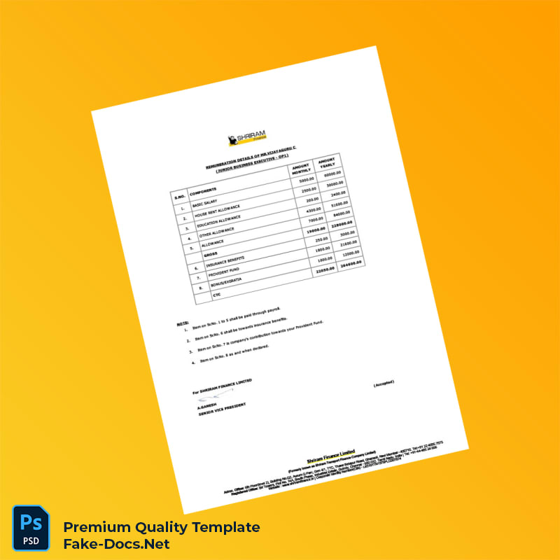 India Shriram Finance Limited Employment Offer Letter Template (Word & PDF) 2 page