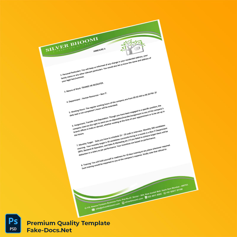 India Silver Biooami Appointment Letter Template (Word & PDF) 6 page