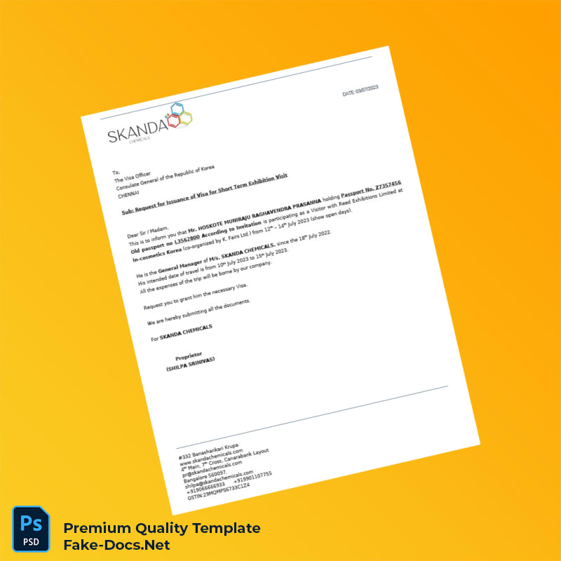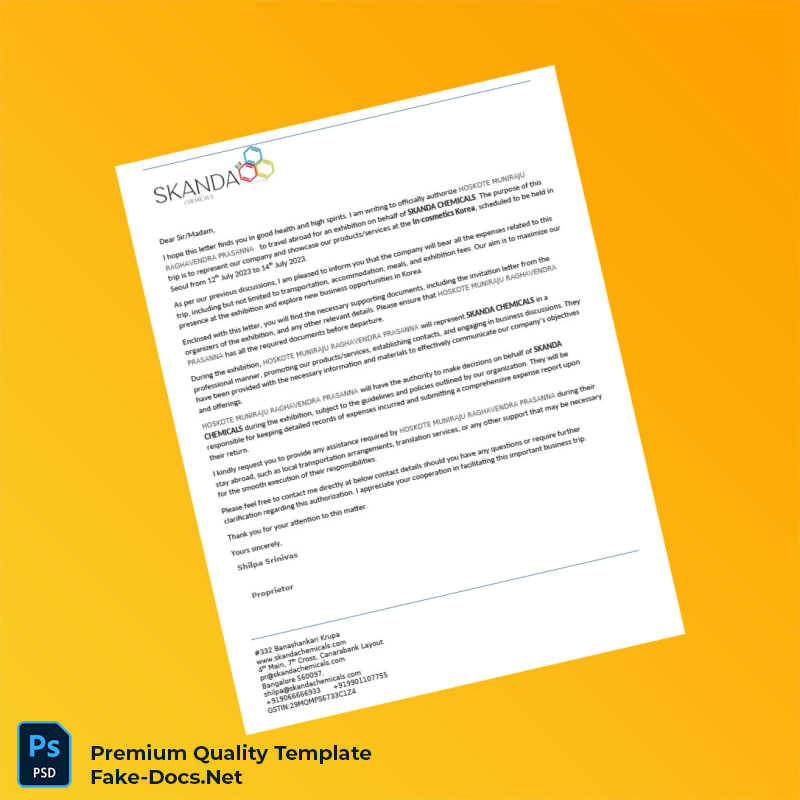 India Skanda Chemicals Employment Verification Letter Template (Word & PDF) 4 page