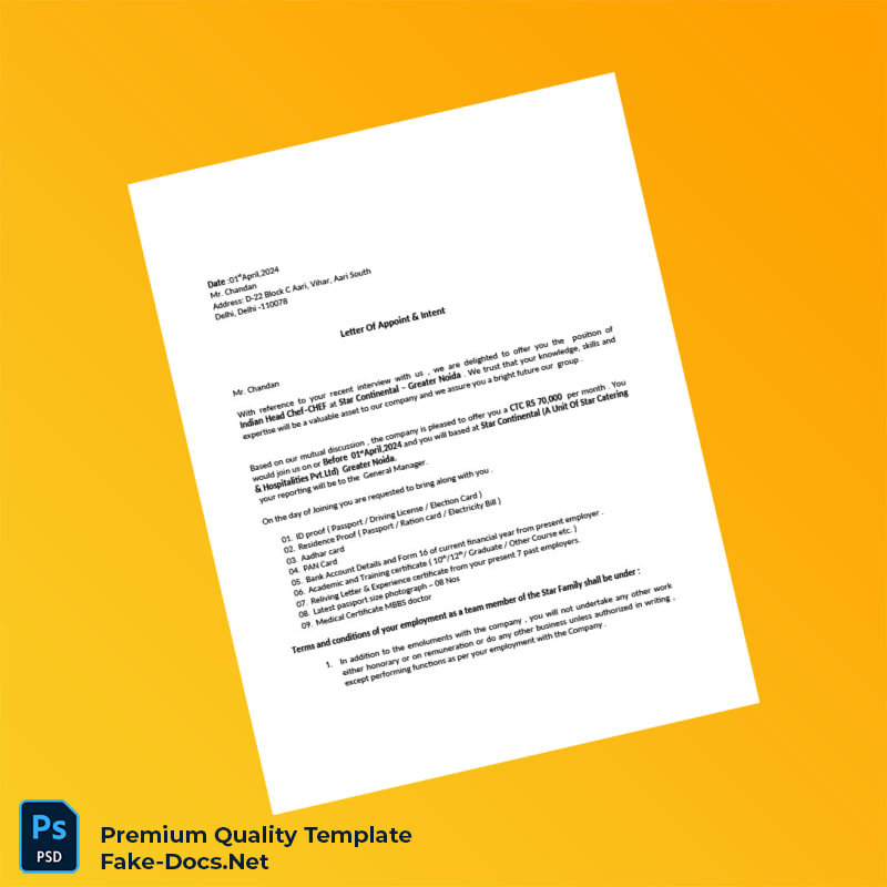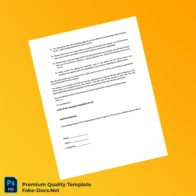 India Star Continental Employment Verification Letter Template (Word & PDF) 3 page