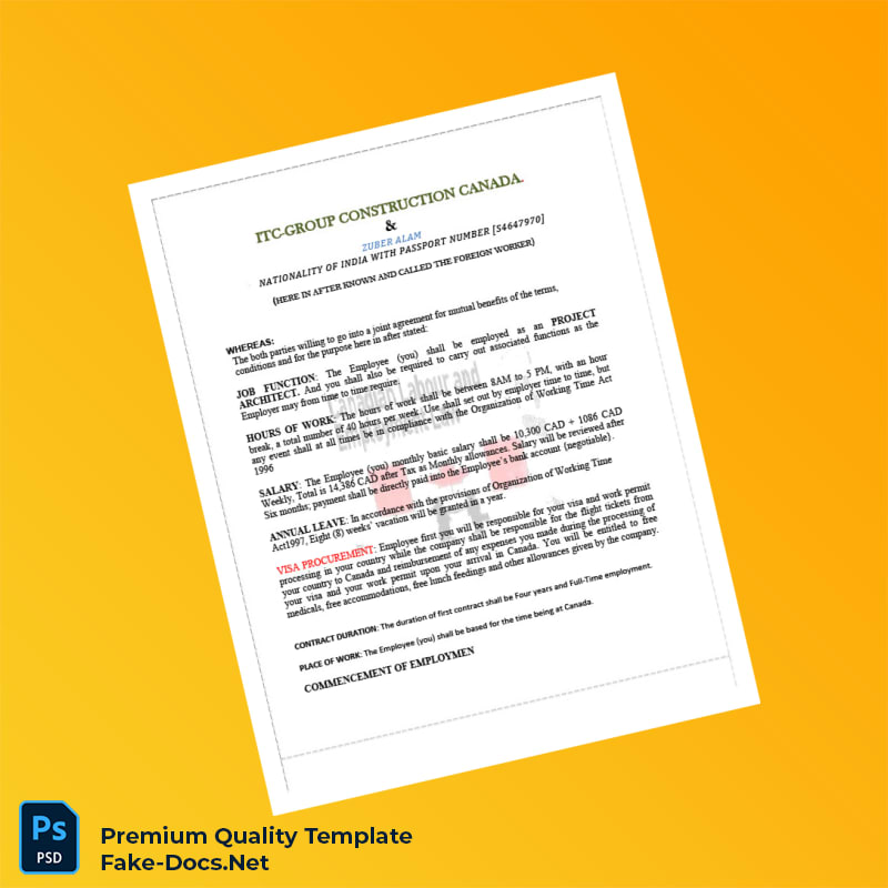 Canada ITC-Group Construction Employment Verification Letter Template (Word & PDF) 7 page