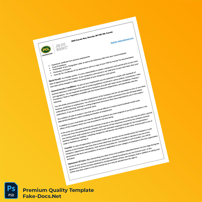 Canada PCL GROUPS Employment Verification Letter Template (Word & PDF) offers quick, professional job confirmation documents for efficient employment proof.