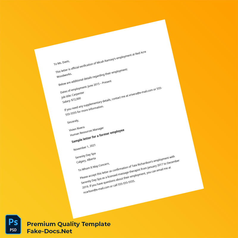 Canada Red Acre Woodworks Employment Verification Letter Template (Word & PDF) 3 page