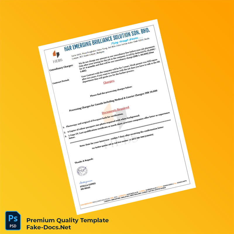 Canada JIC Development Proof of Employment Letter Template (Word & PDF)