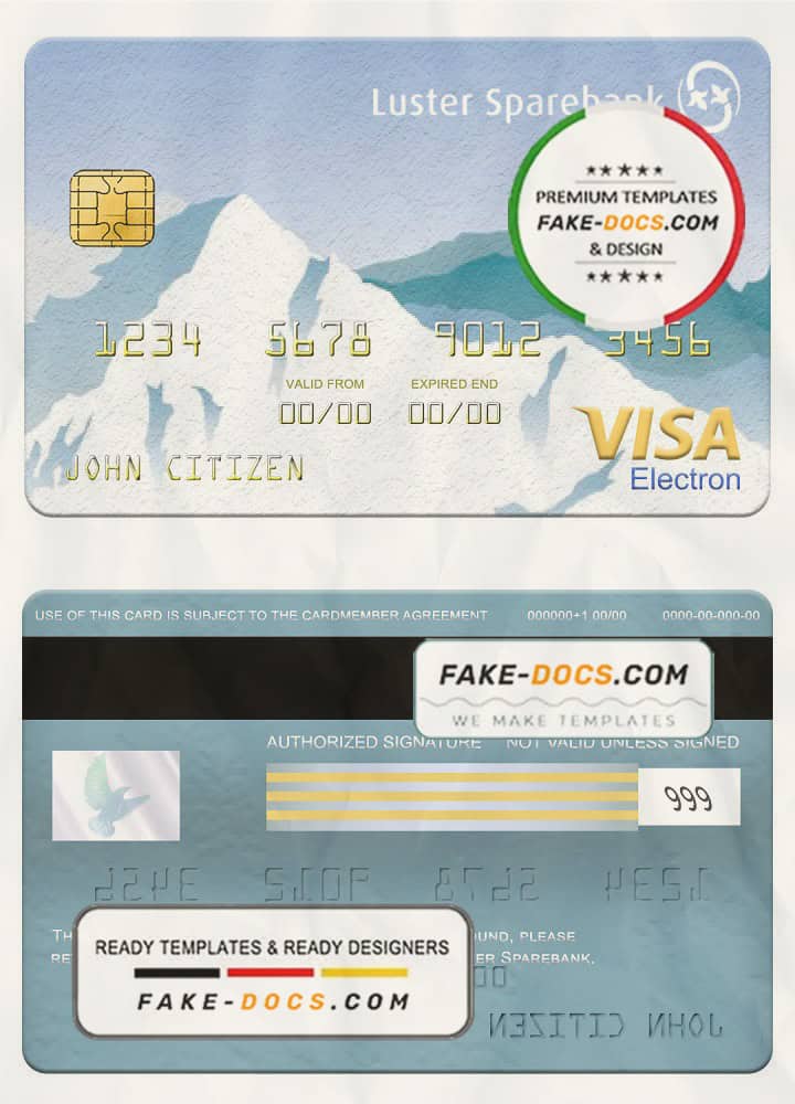 Norway Luster Sparebank visa electron card, fully editable template in PSD format