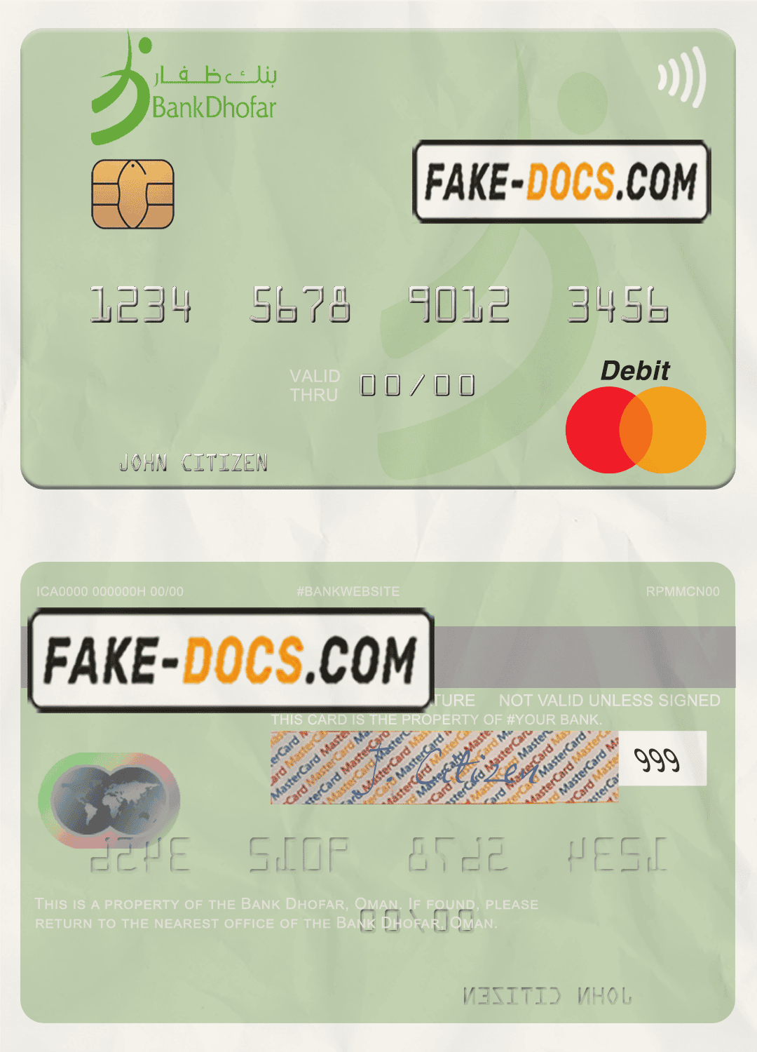 Oman Bank Dhofar visa debit card, fully editable template in PSD format