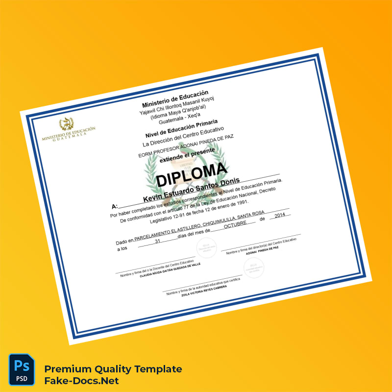 Guatemala EORM PROFESOR ADONAI PINEDA DE PAZ Primary Education Diploma Template – High Quality Replacement Template 2 Page