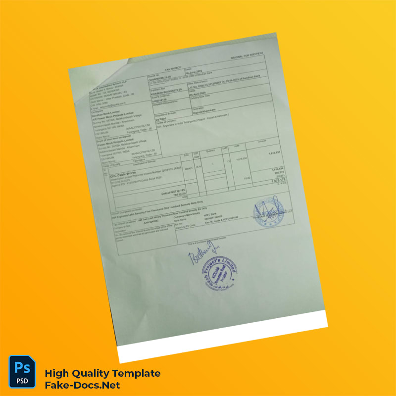 India Quality Irrigation Tax Invoice Template in Word and PDF formats