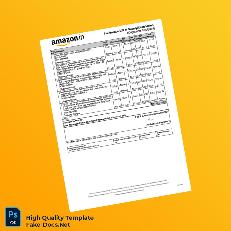 India R K WorldInfocom Pvt Ltd Tax Invoice Template in Word and PDF formats 2 page