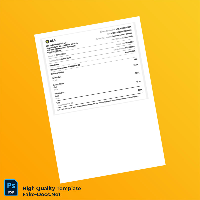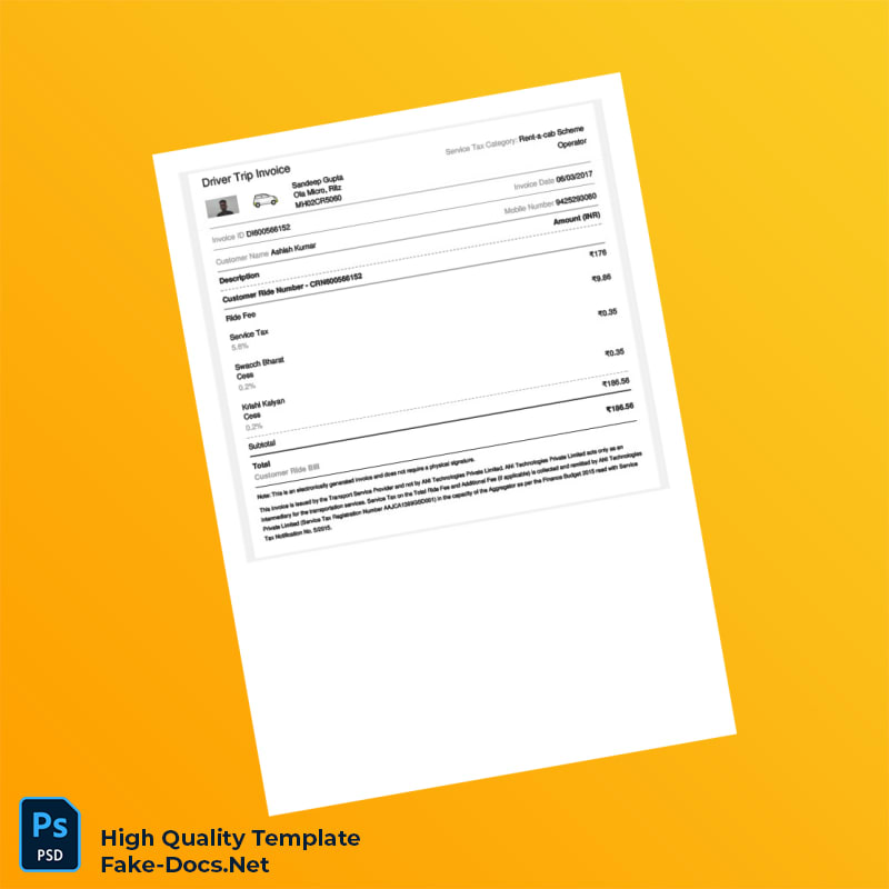 India Ridesharing Service Invoice Template in Word and PDF formats 3 page