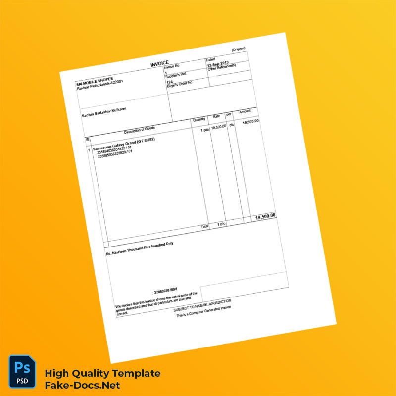 India SAI Mobile Shopee Invoice Template in Word and PDF formats 2 page