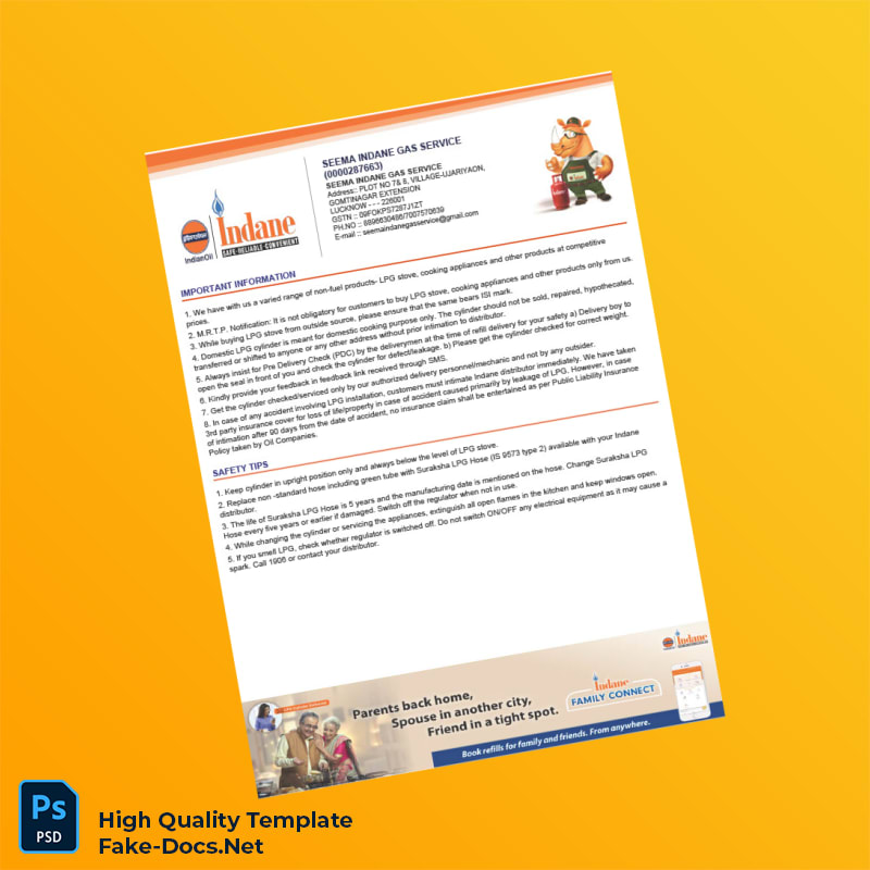 India Seema Indane Gas Service Tax Invoice Template in Word and PDF formats 2 page