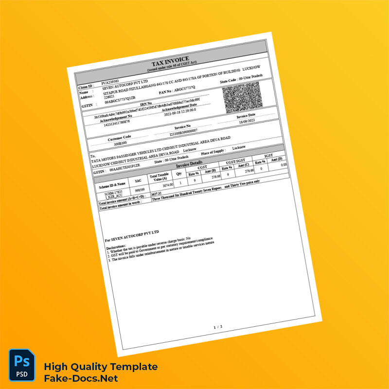 Streamline your billing process with the India Seven Autocorp Pvt Ltd Invoice Template in Word and PDF formats—professional, customizable, and easy to use!