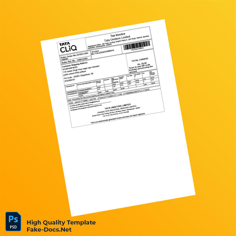 Create professional invoices effortlessly with our India Tata Unistore Limited Tax Invoice Template in Word and PDF formats. Boost efficiency and impress clients!