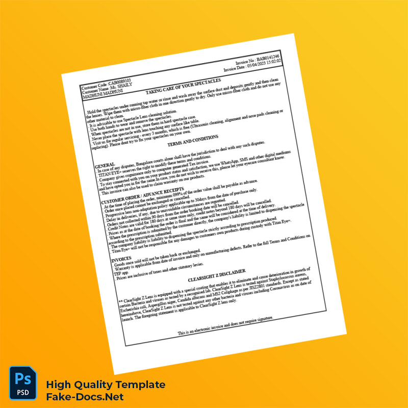 India Titan Company Limited Tax Invoice Template in Word and PDF formats 2 page