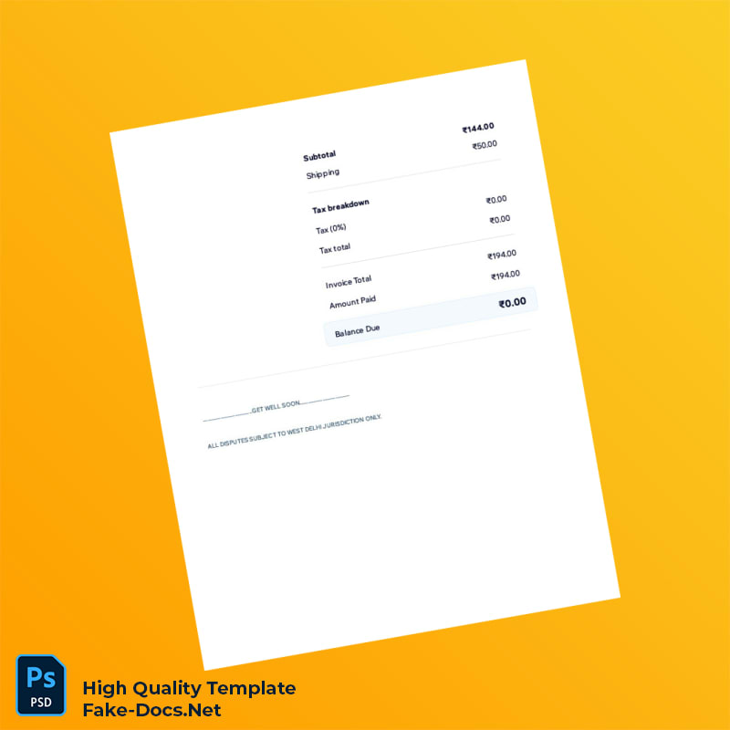 India Unknown Invoice Template in Word and PDF formats