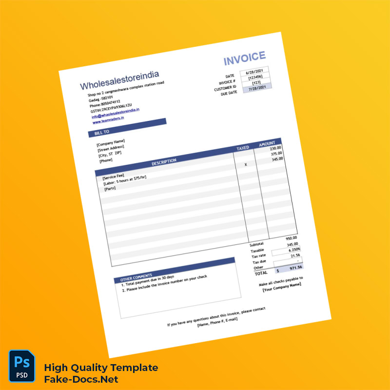 Simplify invoicing with the India Wholesalestoreindia Invoice Template in Word and PDF formats. Enhance professionalism and streamline your billing process today!