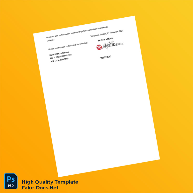Indonesia Mustika Musik Invoice Template in Word and PDF formats 2 page