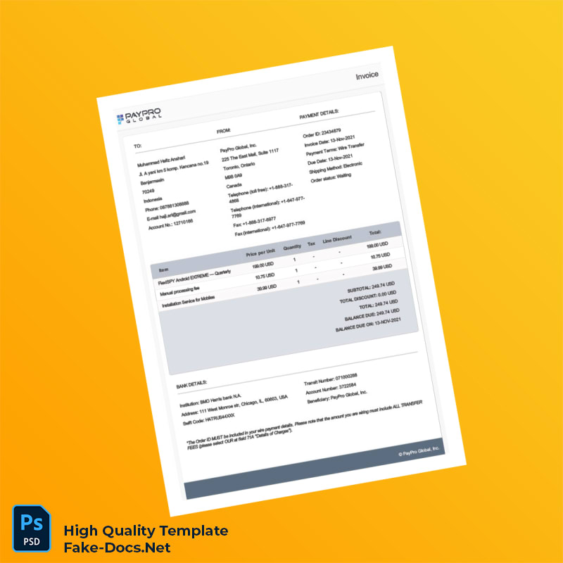 Indonesia PayPro Global Invoice Template in Word and PDF formats 2 page