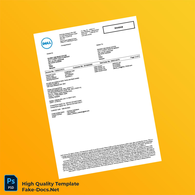 Malaysia Dell Sales Malaysia Sdn Bhd Invoice Template in Word and PDF formats 2 page