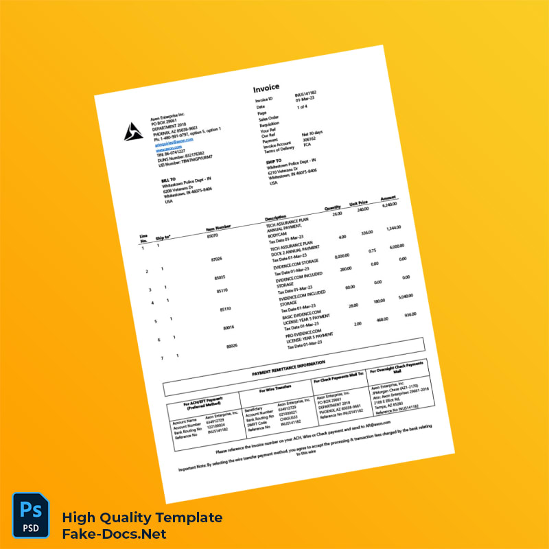 USA Axon Invoice Template in Word and PDF formats 4 page