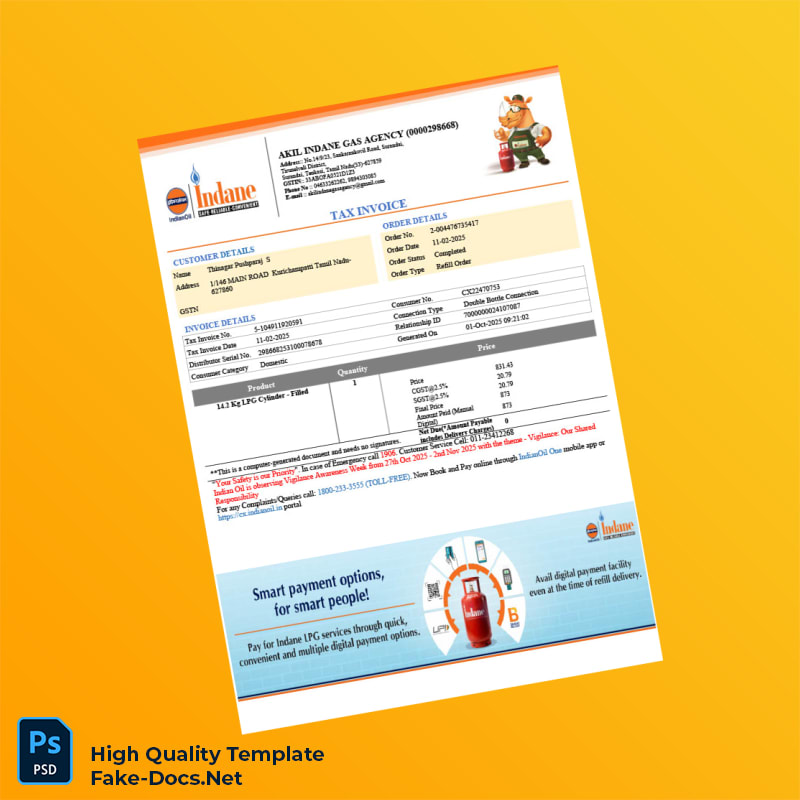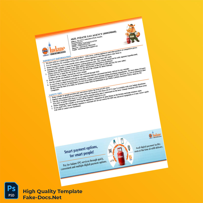 India Akil Indane Gas Agency Invoice Template in Word and PDF formats 2 page