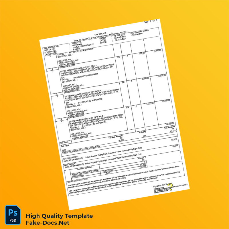 India Forbes Marshall Hyd Pvt Ltd Commercial Invoice Template in Word and PDF formats 6 page
