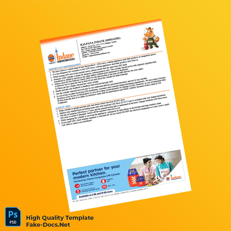 India Kalpana Gas Agency Tax Invoice Template in Word and PDF formats 2 page