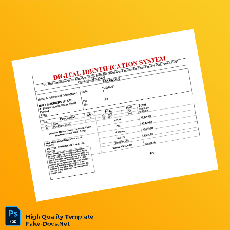 Streamline your billing with the India MAGI INTERIORS Tax Invoice Template in Word and PDF formats—professional, customizable, and easy to use!