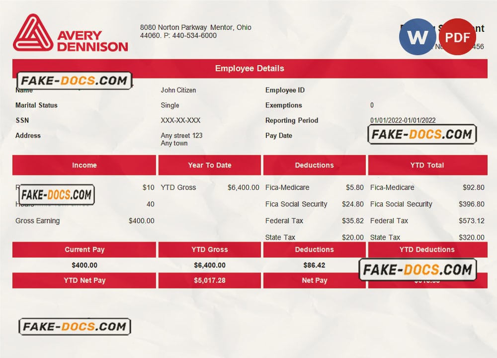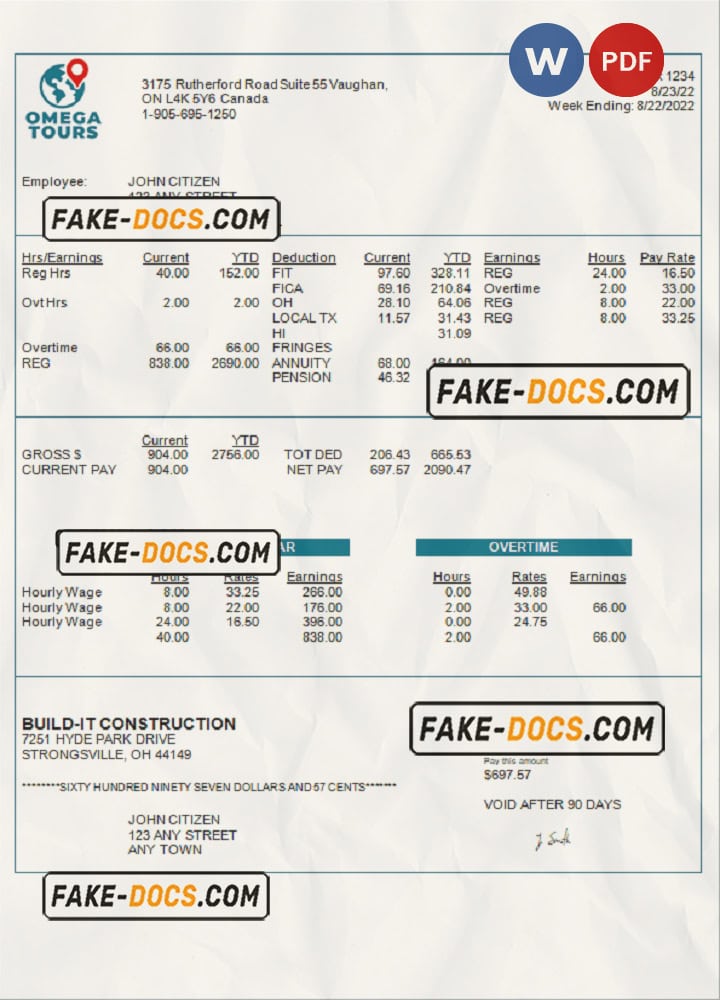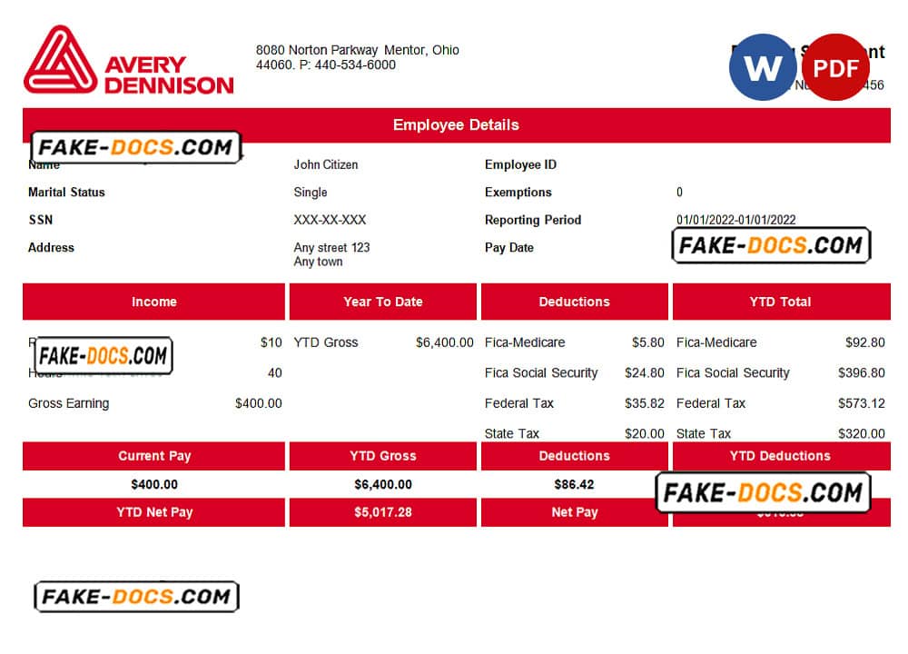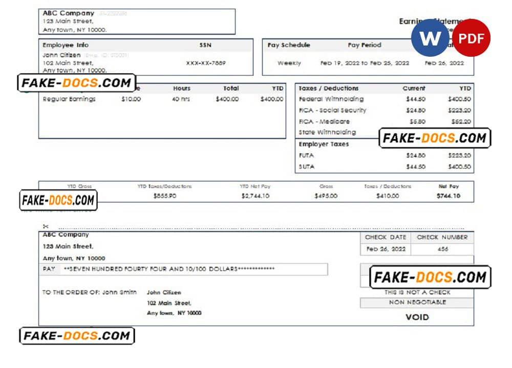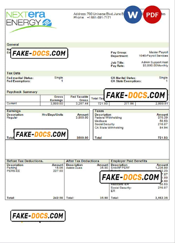USA Newmont Corporation mining company pay stub Word and PDF template
