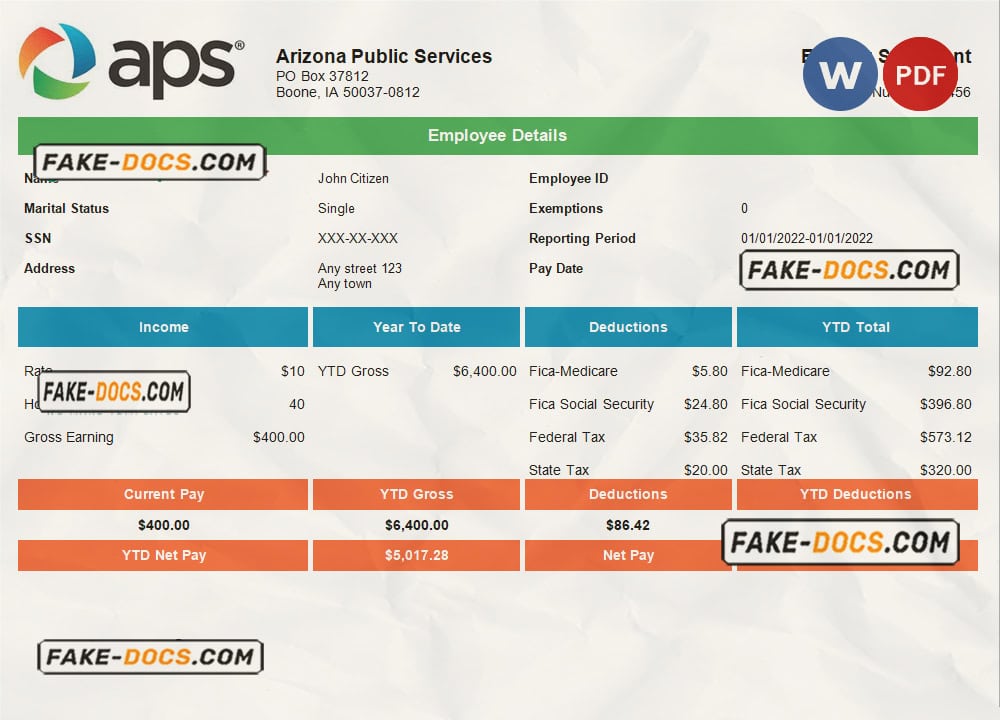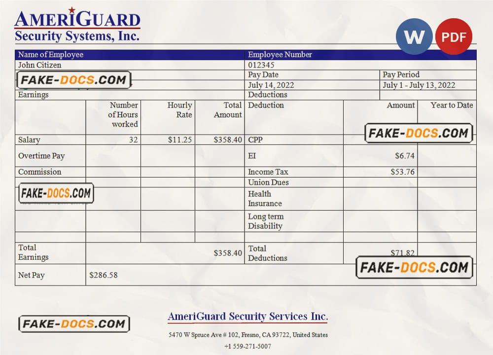 USA AmeriGuard Security Services Inc security company pay stub Word and PDF template