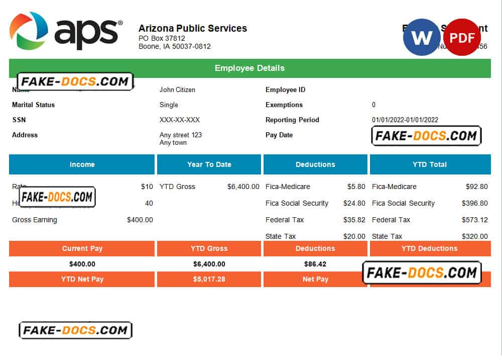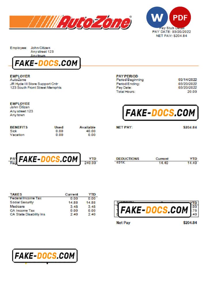 USA Auto Zone auto retailer company pay stub Word and PDF template