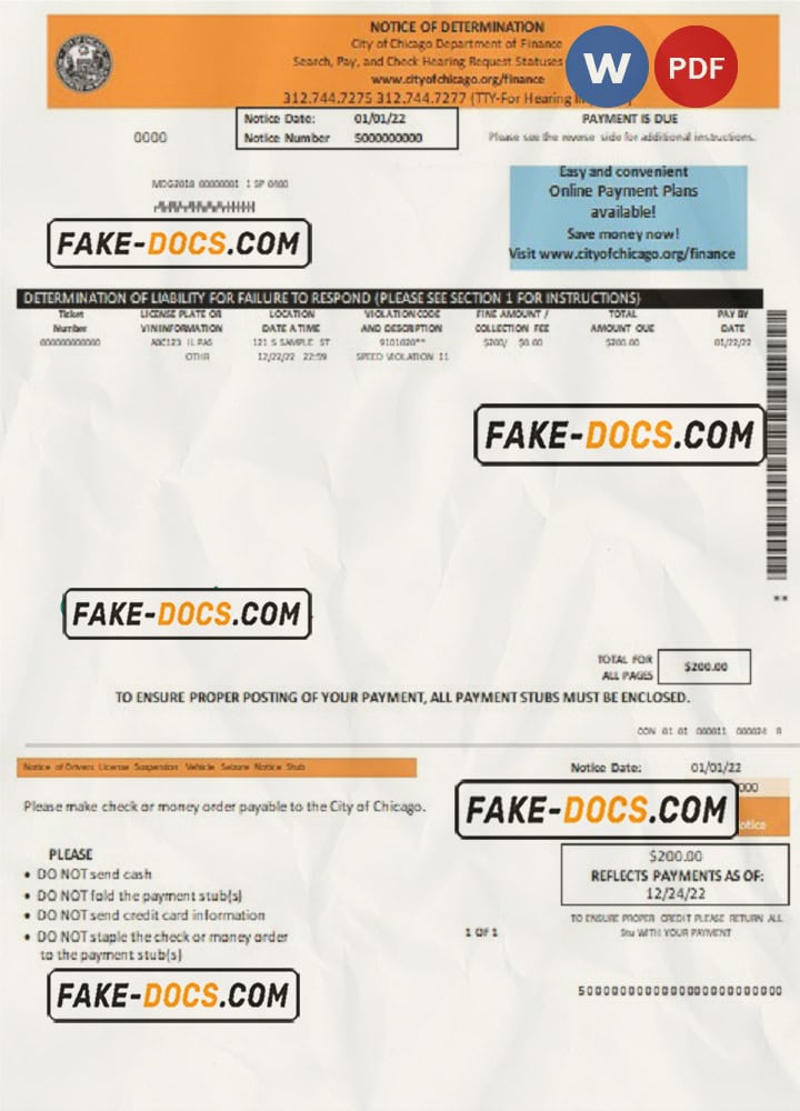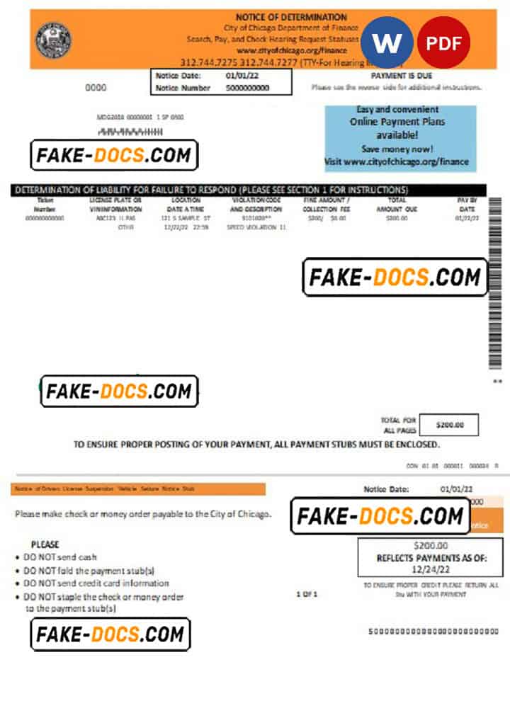 USA Chicago Notice of Determination pay stub Word and PDF template