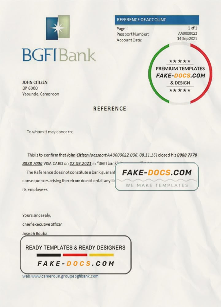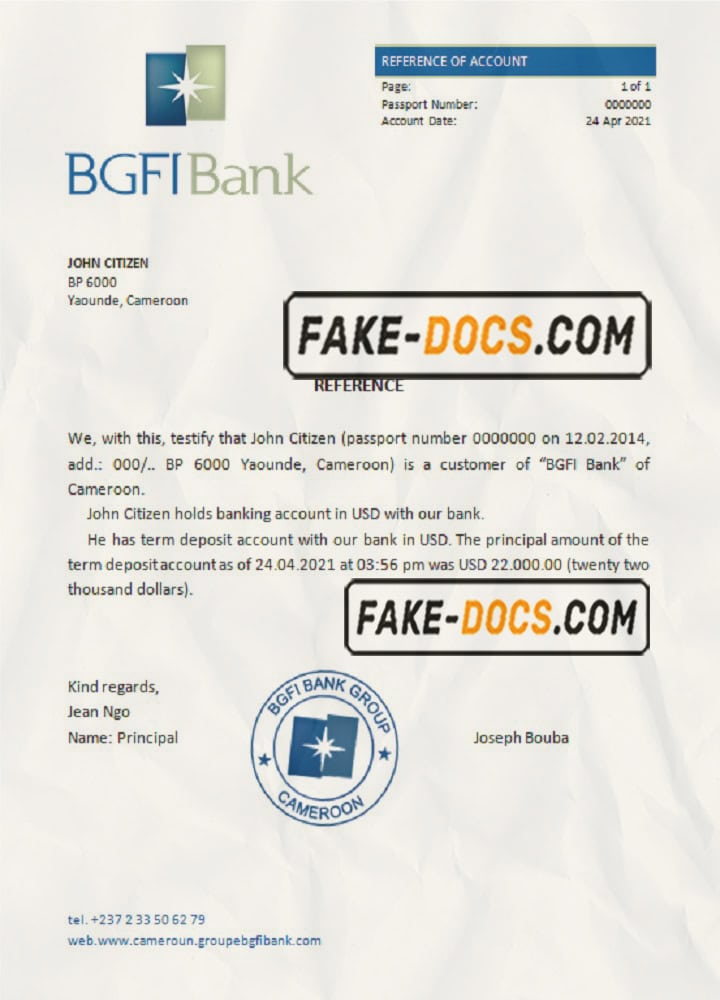 Cameroon BGFI Bank account reference letter template in Word and PDF format